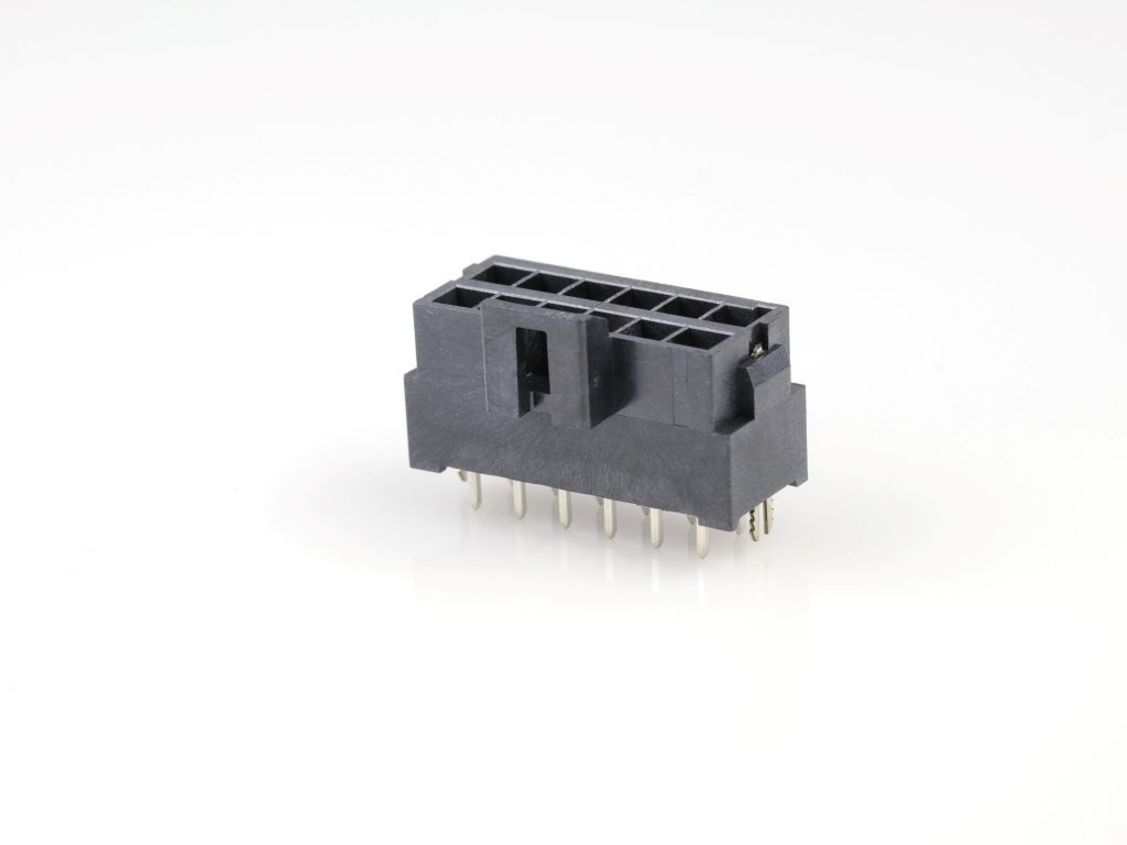 Ultra-Fit Vertical Header, 3.50mm Pitch, Dual Row, 12 Circuits, with Solder Clips, Tin (Sn) Plating, Black, Glow-Wire Capable