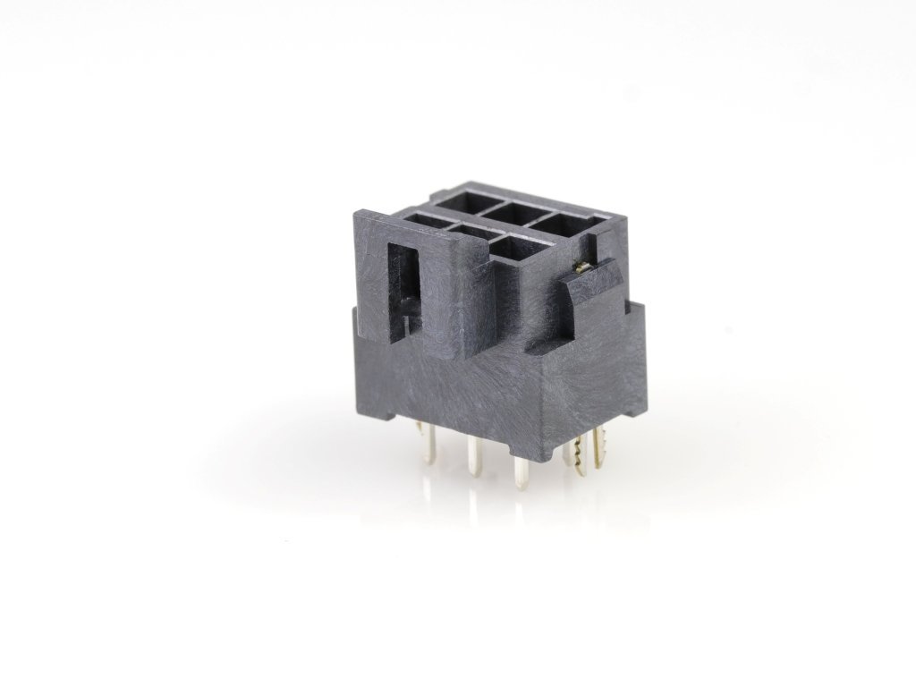 Ultra-Fit Vertical Header, 3.50mm Pitch, Dual Row, 6 Circuits, with Solder Clips, 0.76µm Gold (Au) Plating, Black, Glow-Wire Capable