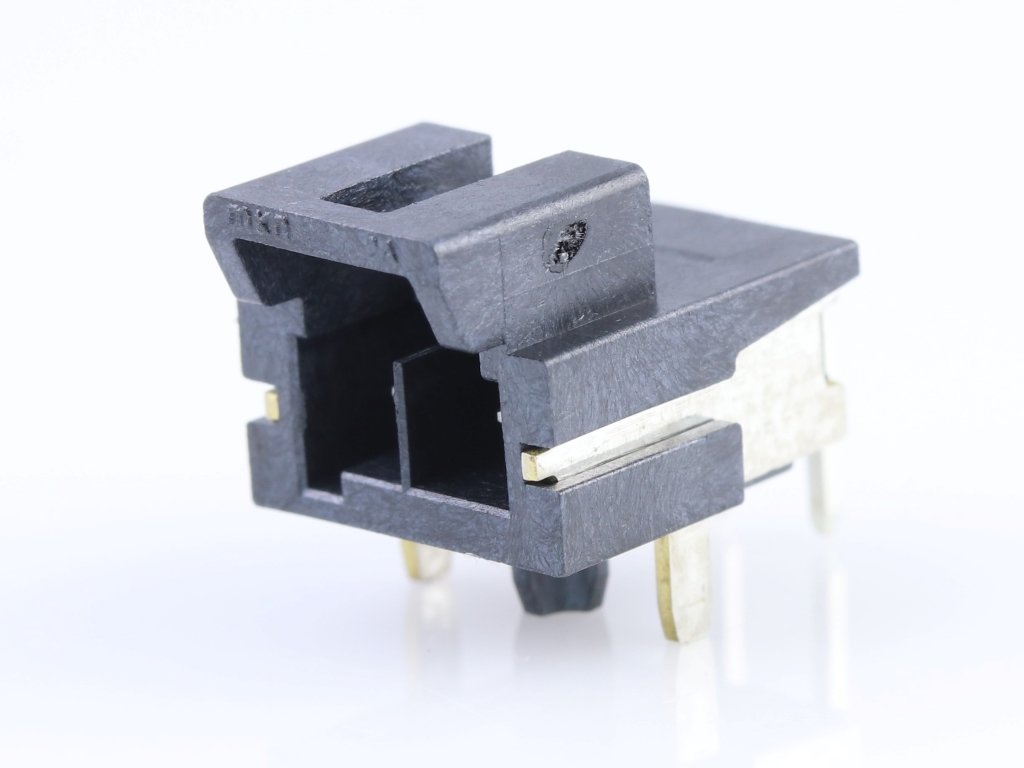 Ultra-Fit Right-Angle Header with Solder Nail, 3.50mm Pitch, Single Row, 2 Circuits, 0.76µm Gold (Au) Plating, Black, Glow-Wire Capable