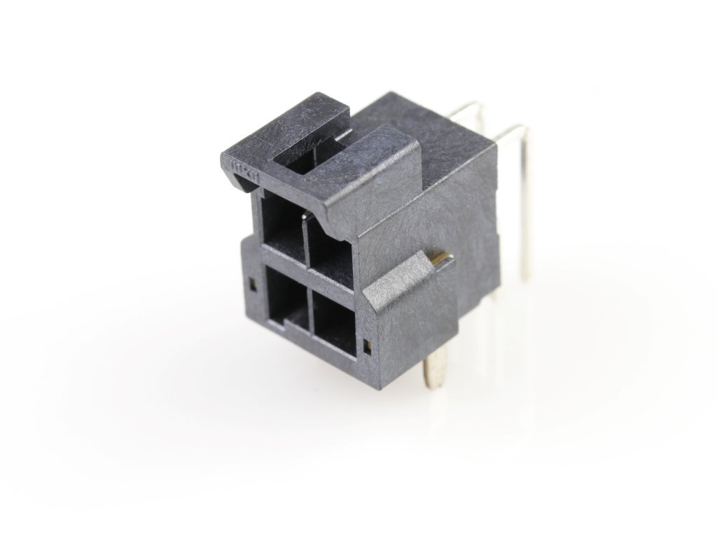 Ultra-Fit Right-Angle Header with Solder Nail, 3.50mm Pitch, Dual Row, 4 Circuits, Matte Tin (Sn) Plating, Black, Glow-Wire Capable