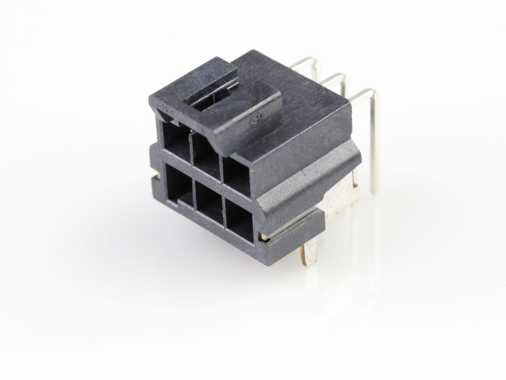Ultra-Fit Right-Angle Header with Solder Nail, 3.50mm Pitch, Dual Row, 6 Circuits, 0.76µm Gold (Au) Plating, Black, Glow-Wire Capable