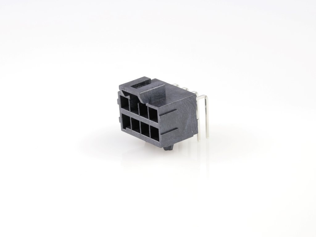 Ultra-Fit Right-Angle Header with Solder Nail, 3.50mm Pitch, Dual Row, 8 Circuits, 0.76µm Gold (Au) Plating, Black, Glow-Wire Capable