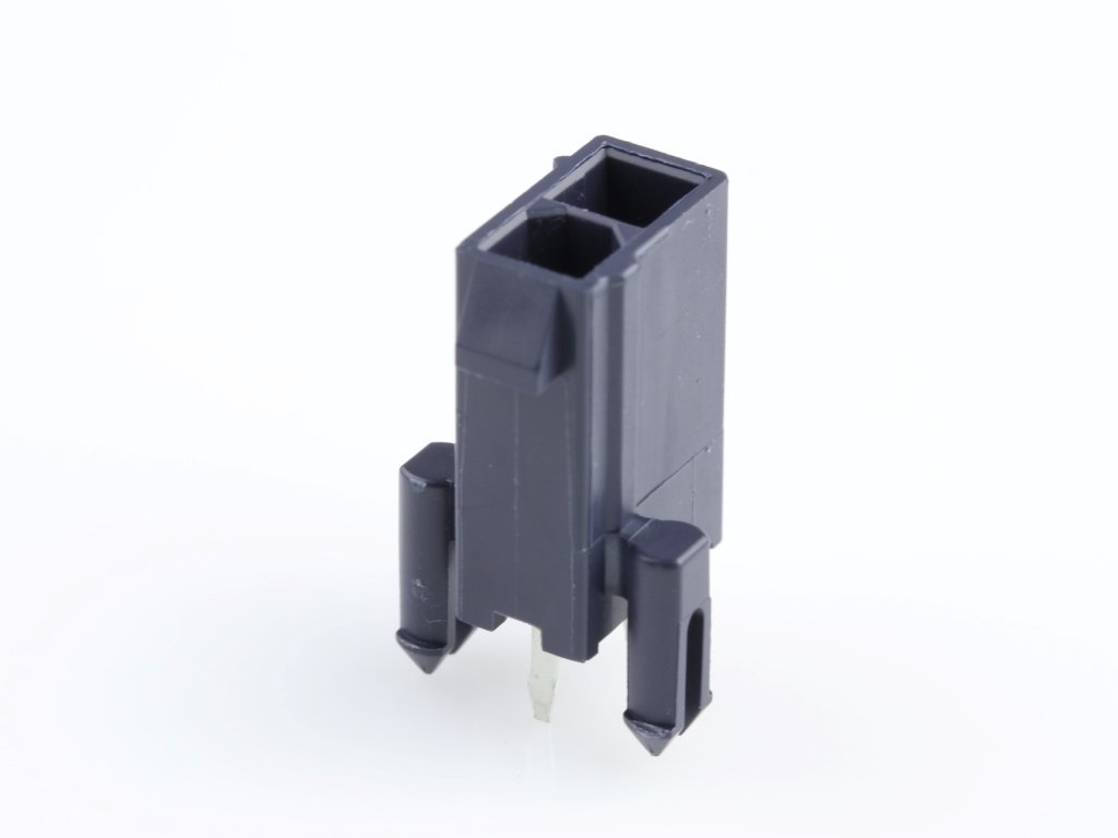 Mini-Fit Jr. Header, Dual Row, Vertical, with Snap-in Plastic Peg PCB Lock, 2 Circuits, Nylon 6/6, UL 94V-2, Tin (Sn) Plating, Glow-Wire Capable, Black
