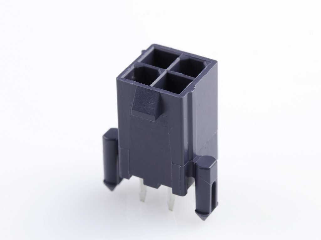 Mini-Fit Jr. Header, Dual Row, Vertical, with Snap-in Plastic Peg PCB Lock, 4 Circuits, Nylon 6/6, UL 94V-2, Tin (Sn) Plating, Glow-Wire Capable, Black