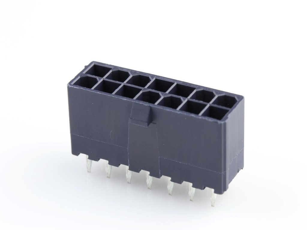 Mini-Fit Jr. Header, Dual Row, Vertical, without Snap-in Plastic Peg PCB Lock, 14 Circuits, PA Polyamide Nylon 6/6 94V-2, Tin (Sn) Plating, Glow-Wire Capable