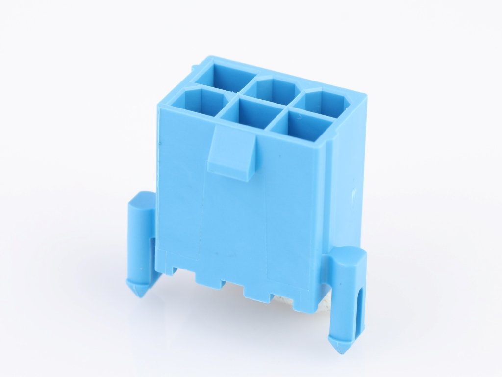 Mini-Fit Versa Color Header, Dual Row, Vertical, with Snap-in Plastic Peg PCB Lock, 6 Circuits, Nylon 6/6, UL 94V-0, Tin (Sn) Plating, Glow-Wire Capable, Blue