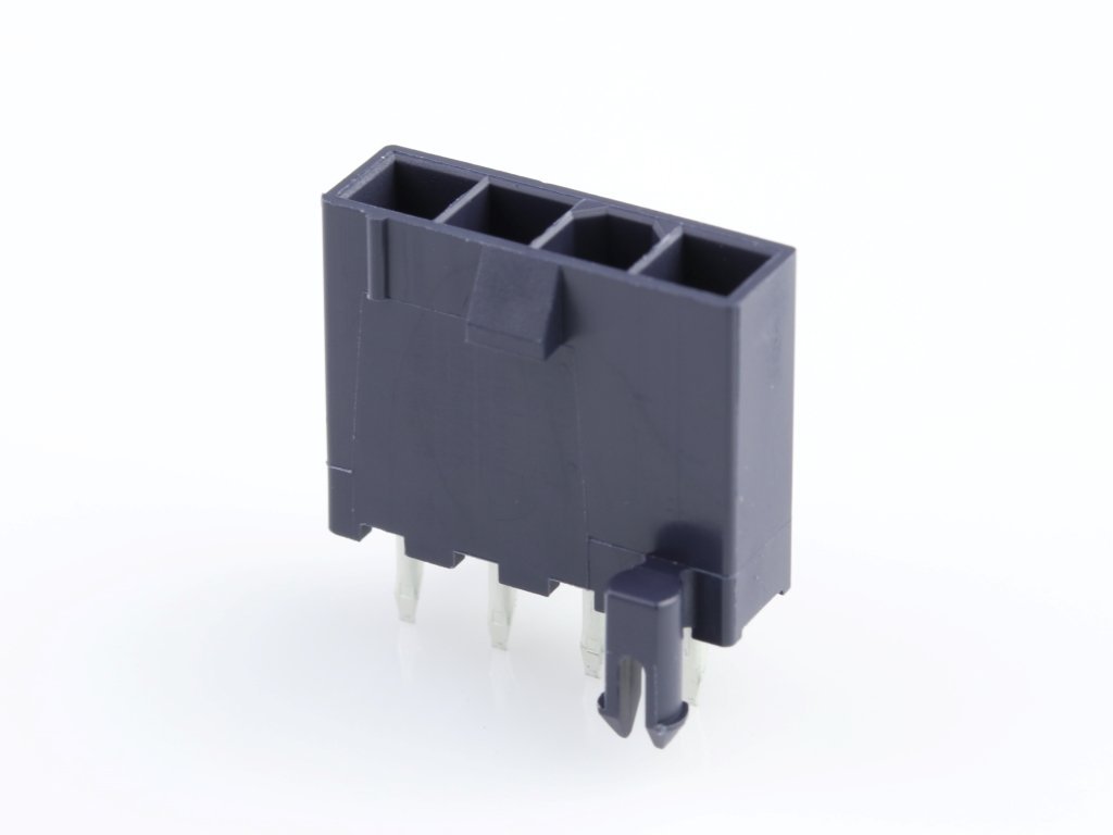Mini-Fit Jr. Header, Single Row, Vertical, 4 Circuits, Nylon, 94V-0, Matte Tin (Sn) Plating, Glow-Wire Capable, Black