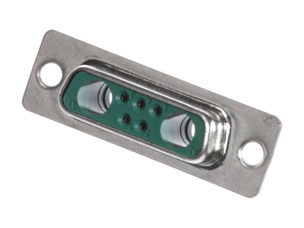 FCT Mixed Layout D-Sub Connector, Female, Straight, Solder Cup, Gold Plating, Tin-plated Shell, 7 Circuits Max, 5 Signal Contacts Loaded, Green Insulator