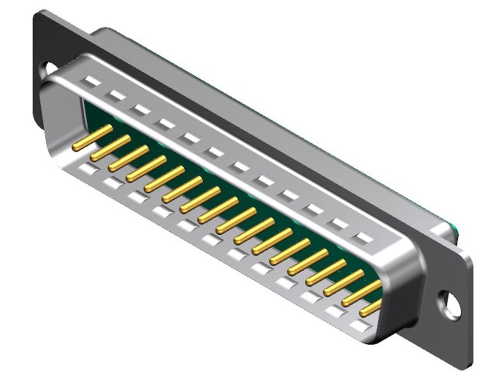 FCT Mixed Layout D-Sub Connector, Male, Straight, PCB Through Hole, Gold Plating, Tin-plated Shell with Dimples, 24 Circuits Max, 17 Signal Contacts Loaded, Green Insulator
