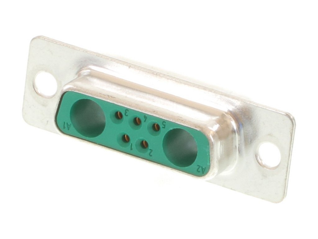 FCT Mixed Layout D-Sub Connector, Female, Straight, PCB Through Hole, Gold Plating, Tin-plated Shell, 7 Circuits Max, 5 Signal Contacts Loaded, Green Insulator