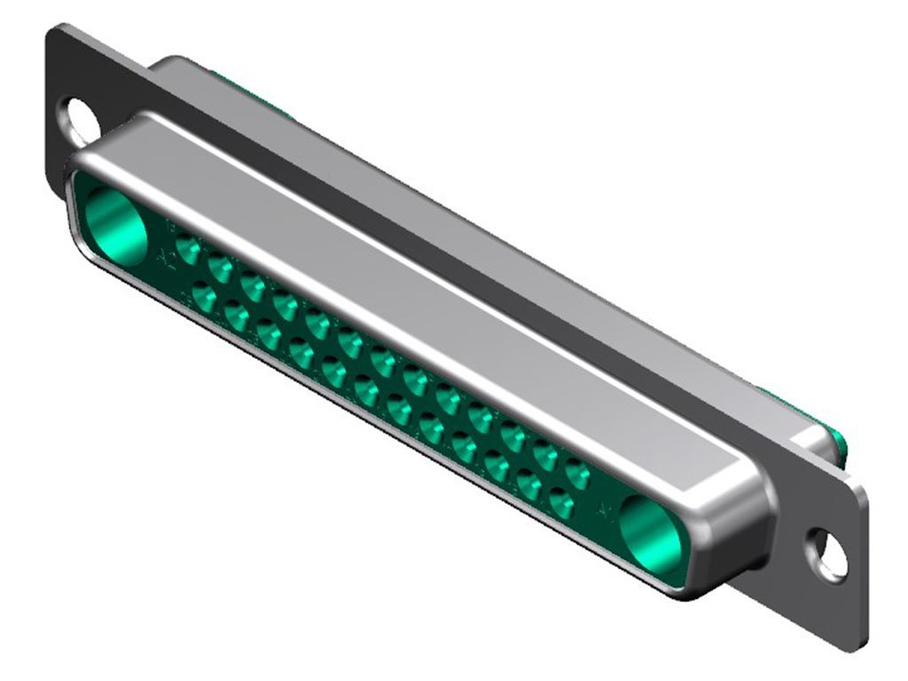 FCT Mixed Layout D-Sub Connector, Female, Straight, Solder Cup, Gold Plating, Tin-plated Shell, 27 Circuits Max, 25 Signal Contacts Loaded, Green Insulator