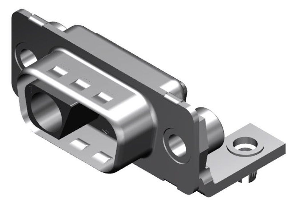 FCT Mixed Layout D-Sub Housing, Male, Tin-plated Shell with Dimples, Polarized, 14.50mm Riveted Metal Bracket and #4-40 Clinch Nut, 2 Circuits Unloaded, Black Insulator
