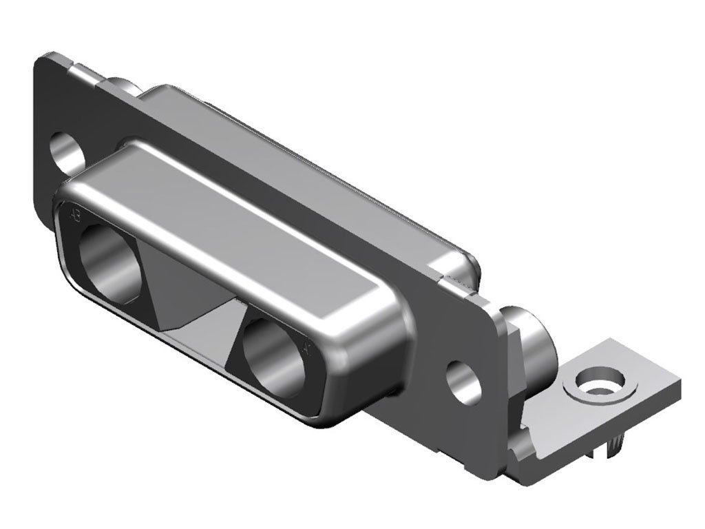 FCT Mixed Layout D-Sub Housing, Female, Tin-plated Shell, Polarized, 14.50mm Riveted Metal Bracket and #4-40 Clinch Nut, 3 Circuits Unloaded, Black Insulator