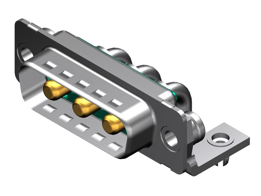 FCT Mixed Layout D-Sub Connector, Male, Right-Angle, PCB Through Hole, Gold Plating, Tin-plated Shell with Dimples, 14.50mm Riveted Metal Bracket and M3 Clinch Nut, 3 Circuits Loaded (High Power), Green Insulator