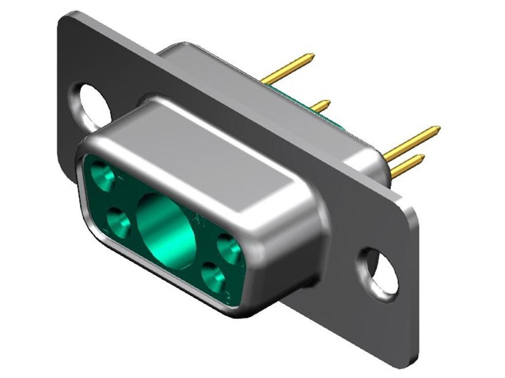 FCT Mixed Layout D-Sub Connector, Female, Straight, PCB Through Hole, Gold Plating, Tin-plated Shell, 5 Circuits Max, 4 Signal Contacts Loaded, Green Insulator