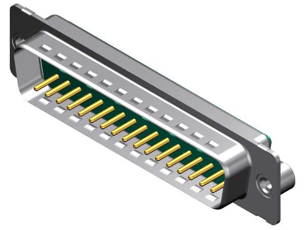FCT Mixed Layout D-Sub Connector, Male, Straight, Solder Cup, Gold Plating, Tin-plated Shell with Dimples, 4.10mm #4-40 Self-Locking Clinch Nut, 24 Circuits Max, 17 Signal Contacts Loaded, Green Insulator