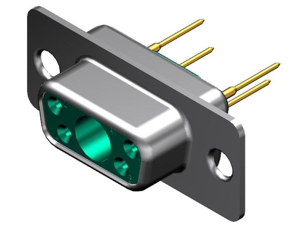 FCT Mixed Layout D-Sub Connector, Female, Straight, PCB Through Hole, Gold Plating, Tin-plated Shell, 5 Circuits Max, 4 Signal Contacts Loaded, Green Insulator
