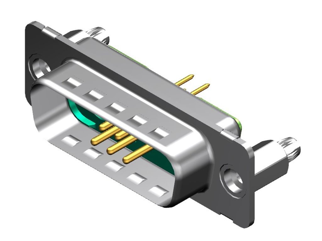 FCT Mixed Layout D-Sub Connector, Male, Straight, PCB Through Hole, Gold Plating, Tin-plated Shell with Dimples, 6.60mm Snap-in Bolt, 7 Circuits Max, 5 Signal Contacts Loaded, Green Insulator