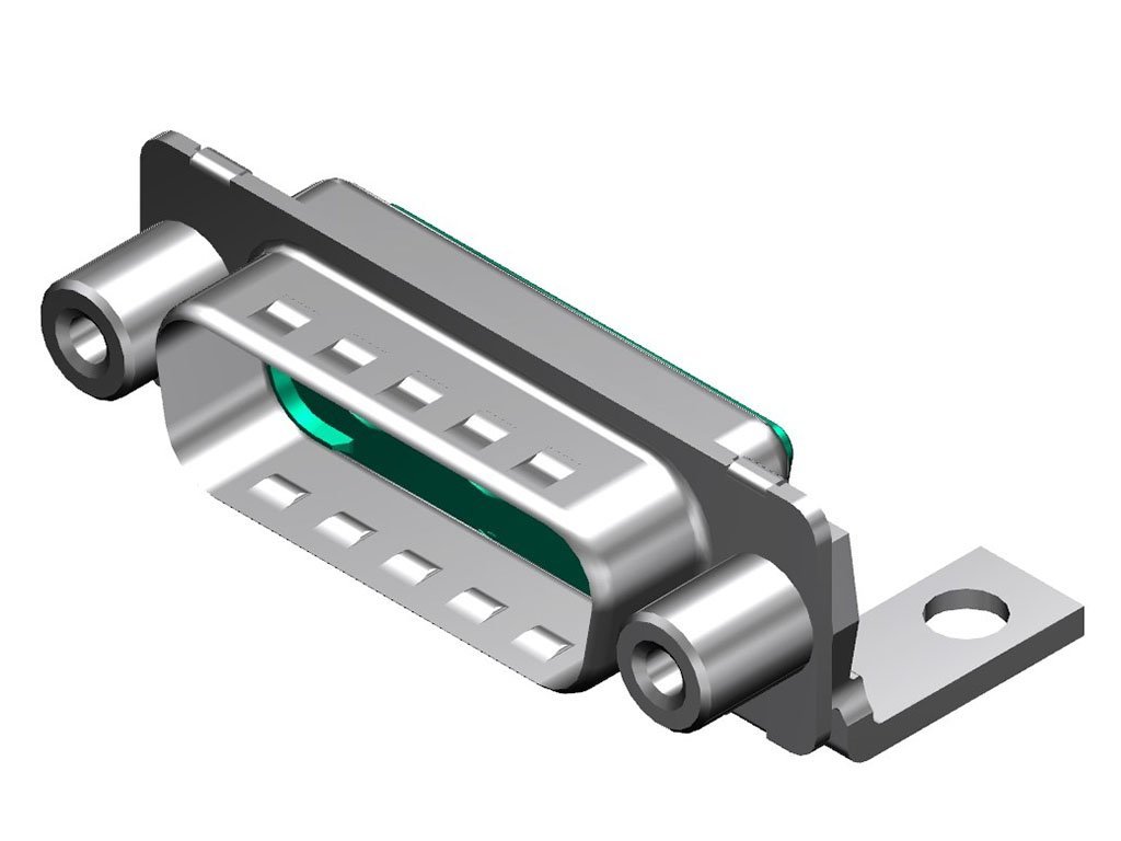FCT Mixed Layout D-Sub Housing, Male, Tin-plated Shell with Dimples, 14.50mm Metal Bracket, 6.20mm #4-40 Threaded Spacer, 3 Circuits Unloaded, Green Insulator