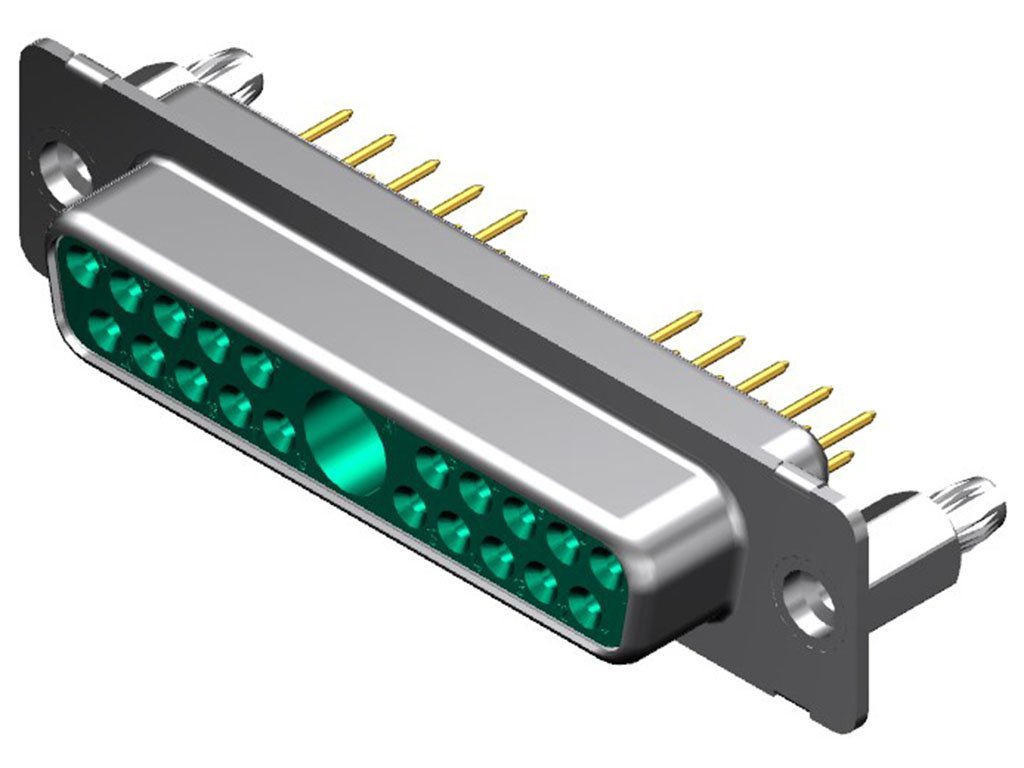 FCT Mixed Layout D-Sub Connector, Female, Straight, PCB Through Hole, Gold Plating, Tin-plated Shell, 6.60mm Snap-in Bolt, 2.40mm PCB Thickness, 21 Circuits Max, 20 Signal Contacts Loaded, Green Insulator