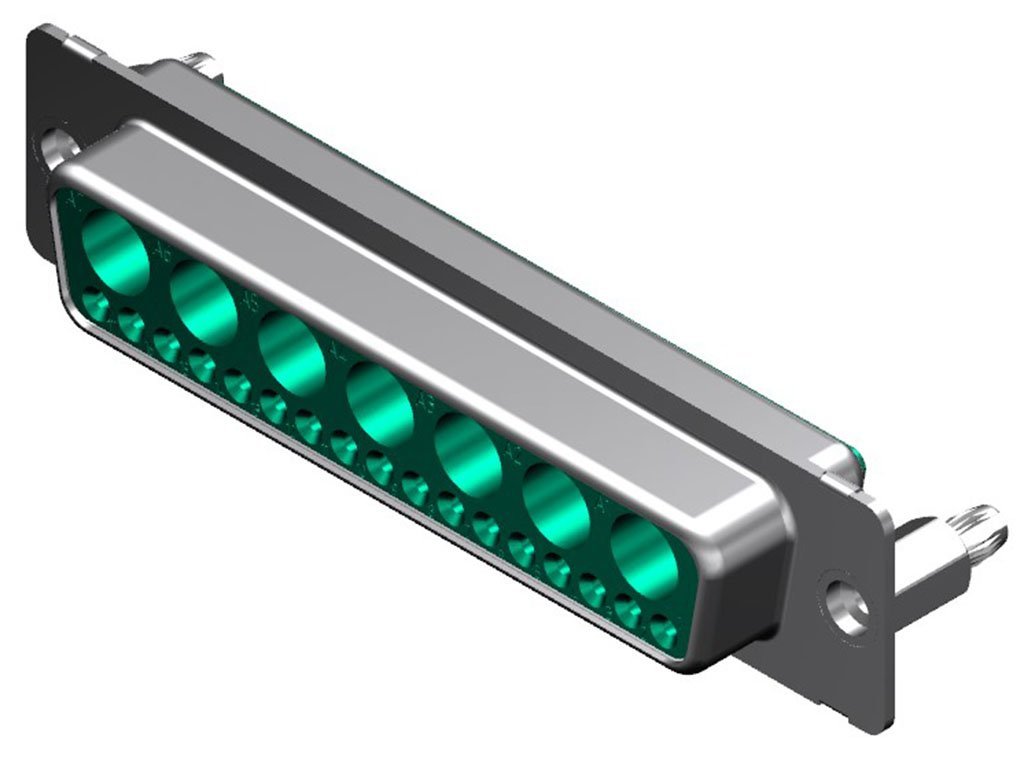 FCT Mixed Layout D-Sub Connector, Female, Straight, PCB Through Hole, Gold Plating, Tin-plated Shell, 6.60mm Snap-in Bolt, 2.40mm PCB Thickness, 24 Circuits Max, 17 Signal Contacts Loaded, Green Insulator