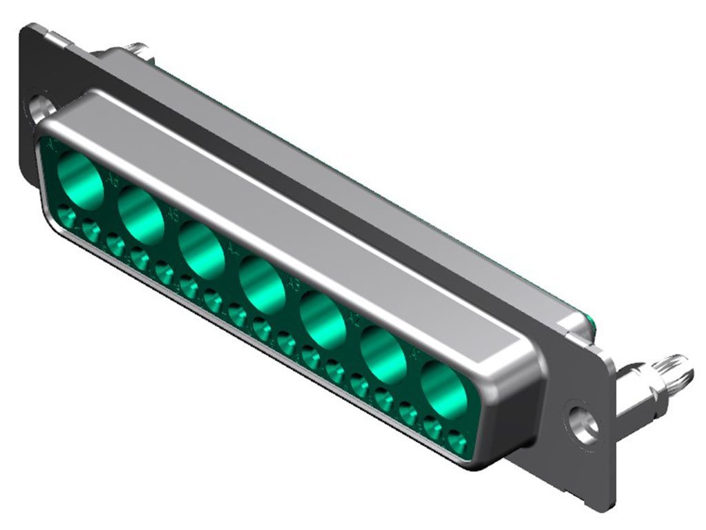 FCT Mixed Layout D-Sub Connector, Female, Straight, PCB Through Hole, Gold Plating, Tin-plated Shell, 6.60mm Snap-in Bolt, 2.40mm PCB Thickness, 24 Circuits Max, 17 Signal Contacts Loaded, Green Insulator