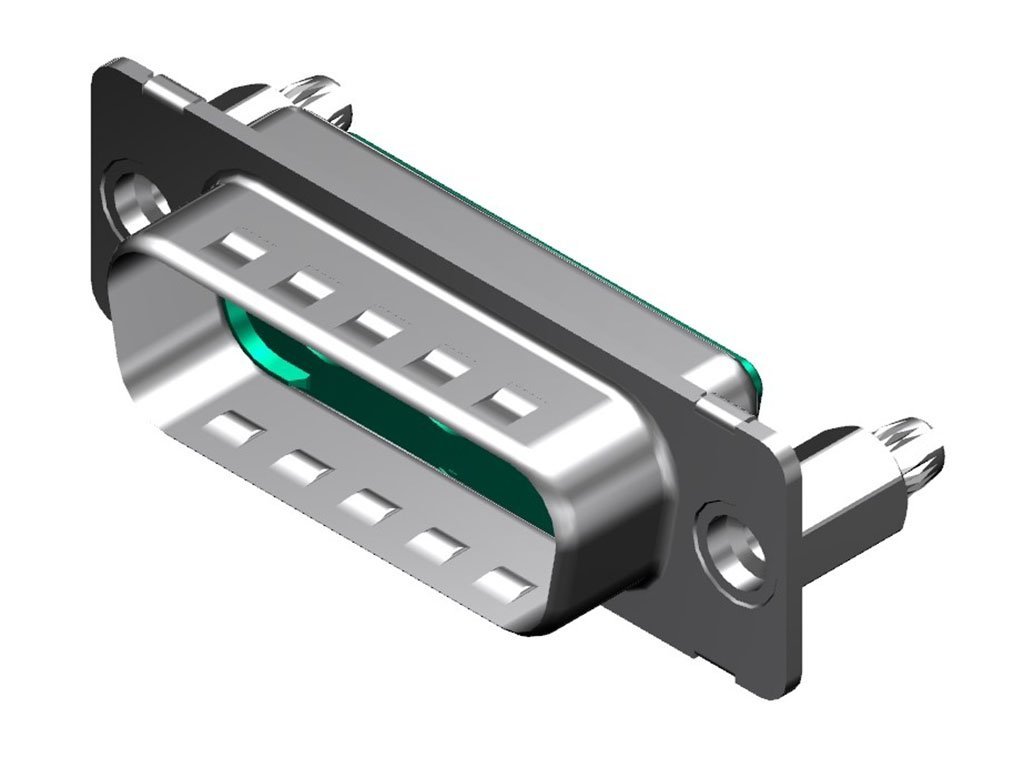 FCT Mixed Layout D-Sub Housing, Male, Tin-plated Shell with Dimples, 6.60mm Snap-in Bolt, 3 Circuits Unloaded, Green Insulator