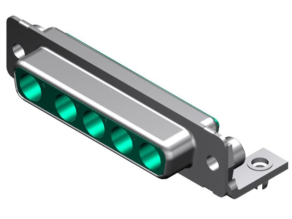 FCT Mixed Layout D-Sub Housing, Female, Tin-plated Shell, 14.50mm Riveted Metal Bracket and #4-40 Clinch Nut, 5 Circuits Unloaded, Green Insulator