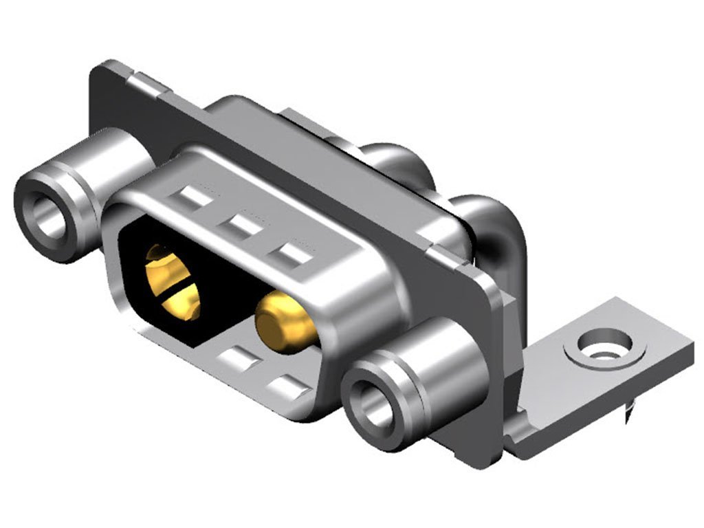 FCT Mixed Layout D-Sub Connector, Male, Right-Angle, PCB Through Hole, Gold Plating, Tin-plated Shell with Dimples, Polarized, 6.20mm M3 Front Threaded Spacer, 14.50mm Riveted Metal Bracket, 2 Circuits Loaded (High Power Male and Female), Black Insulator