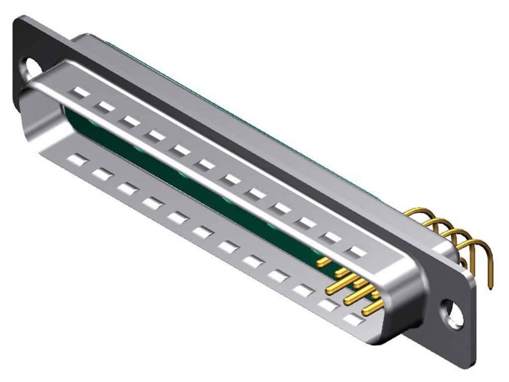 FCT Mixed Layout D-Sub Connector, Male, Right-Angle, PCB Through Hole, Gold Plating, Tin-plated Shell with Dimples, 13 Circuits Max, 7 Signal Contacts Loaded, Green Insulator