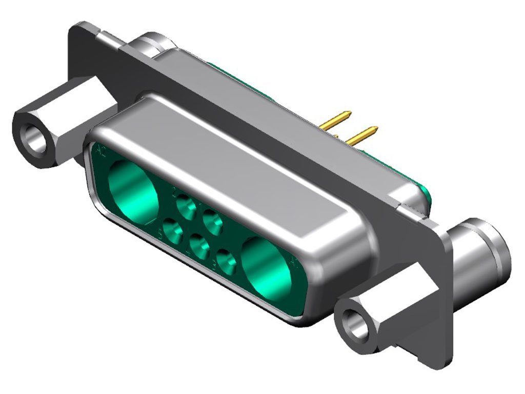 FCT Mixed Layout D-Sub Connector, Female, Straight, PCB Through Hole, Gold Plating, Tin-plated Shell, 6.40mm #4-40 Front Threaded Spacer, 6.50mm M3 Rear Threaded Spacer, 7 Circuits Max, 5 Signal Contacts Loaded, Green Insulator