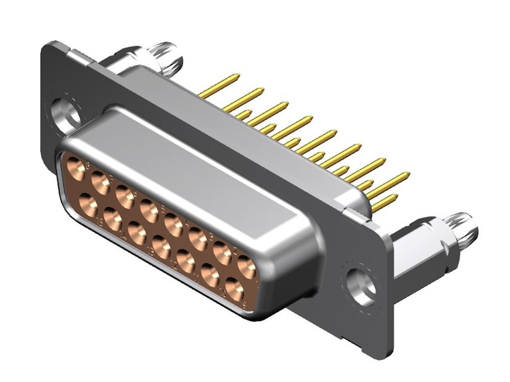 FCT Standard-Density D-Sub Connector, Female, Straight, PCB Through Hole, 11.70mm Tail Length, Gold Plating, 200 Mating Cycles, 8.10mm M3 Snap-in Bolt, 15 Circuits, Heat Resistant Natural Insulator