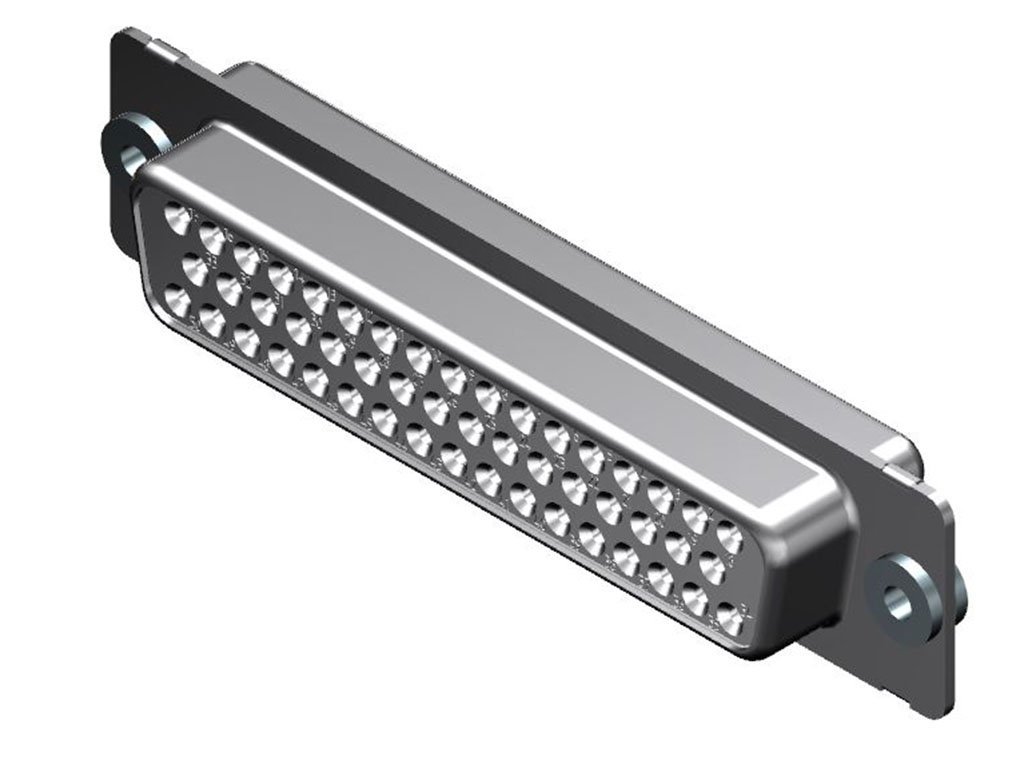 FCT Standard-Density D-Sub Connector, Female, Straight, Solder Cup, 7.40mm Tail Length, Gold Plating, 500 Mating Cycles, Float-mounted, 50 Circuits, White Insulator