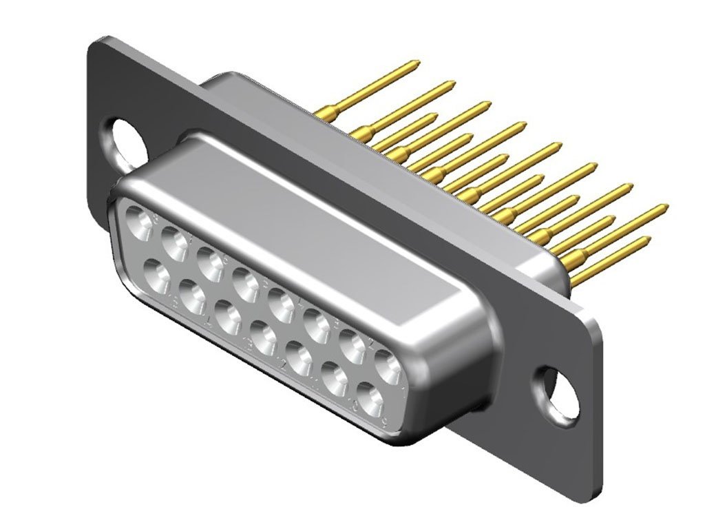 FCT Standard-Density D-Sub Connector, Female, Straight, PCB Through Hole, 14.90mm Tail Length, Gold Plating, 200 Mating Cycles, 15 Circuits, White Insulator