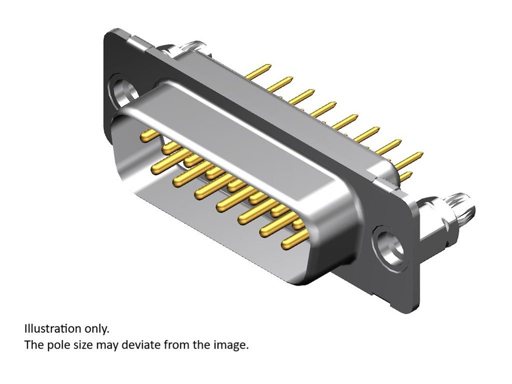 FCT Standard-Density D-Sub Connector, Male, Straight, PCB Through Hole, 10.30mm Tail Length, Gold over Nickel Phosphorus Plating, Shell without Dimples, 500 Mating Cycles, 5.60mm #4-40 Snap-in Bolt, 9 Circuits, White Insulator