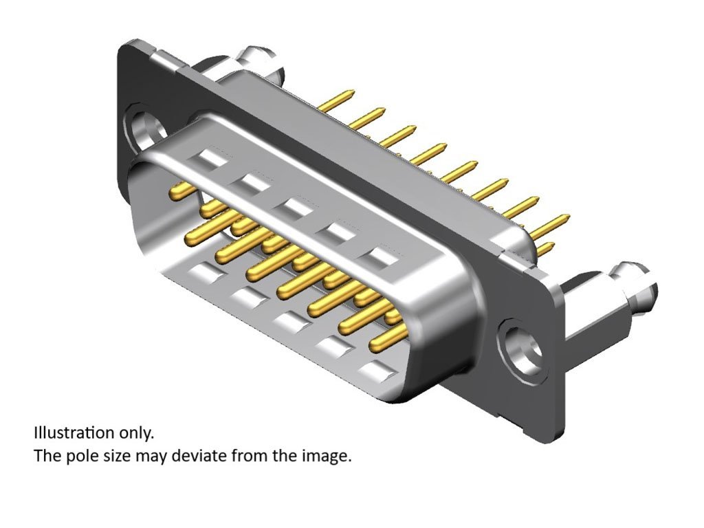 FCT Standard-Density D-Sub Connector, Male, Straight, PCB Through Hole, 10.30mm Tail Length, Gold Plating, 50 Mating Cycles, 6.60mm Snap-in Bolt, 9 Circuits with Through Hole, White Insulator