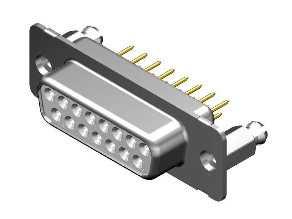 FCT Standard-Density D-Sub Connector, Female, Straight, PCB Through Hole, 10.30mm Tail Length, Gold Plating, 500 Mating Cycles, 6.60mm Snap-in Bolt with Through Hole, 15 Circuits, White Insulator