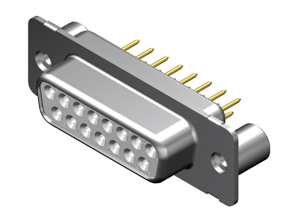 FCT Standard-Density D-Sub Connector, Female, Straight, PCB Through Hole, 10.30mm Tail Length, Gold Plating, 50 Mating Cycles, 0.60mm Diameter Contact, 6.50mm #4-40 Rear Spacer, 15 Circuits, White Insulator
