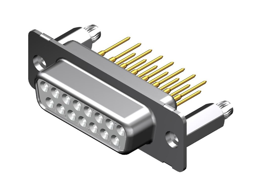 FCT Standard-Density D-Sub Connector, Female, Straight, PCB Through Hole, 14.90mm Tail Length, Gold Plating, 500 Mating Cycles, 10.20mm Snap-in Bolt, 15 Circuits, White Insulator