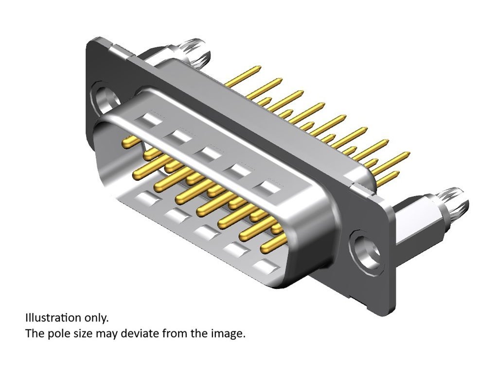 FCT Standard-Density D-Sub Connector, Male, Straight, PCB Through Hole, 11.70mm Tail Length, Gold Plating, 200 Mating Cycles, 8.00mm #4-40 Snap-in Bolt, 25 Circuits, White Insulator
