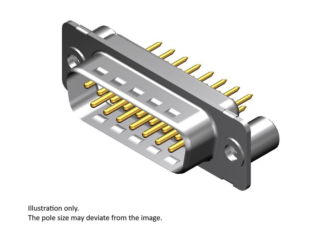 FCT Standard-Density D-Sub Connector, Male, Straight, PCB Through Hole, 10.30mm Tail Length, Gold Plating, 200 Mating Cycles, 0.76mm Diameter Contact, 6.50mm #4-40 Rear Spacer, 25 Circuits, White Insulator