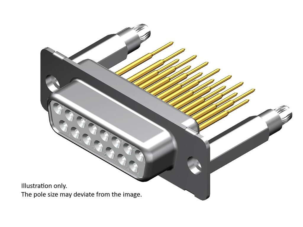 FCT Standard-Density D-Sub Connector, Female, Straight, PCB Through Hole, 20.50mm Tail Length, Gold Plating, 500 Mating Cycles, 25 Circuits, White Insulator