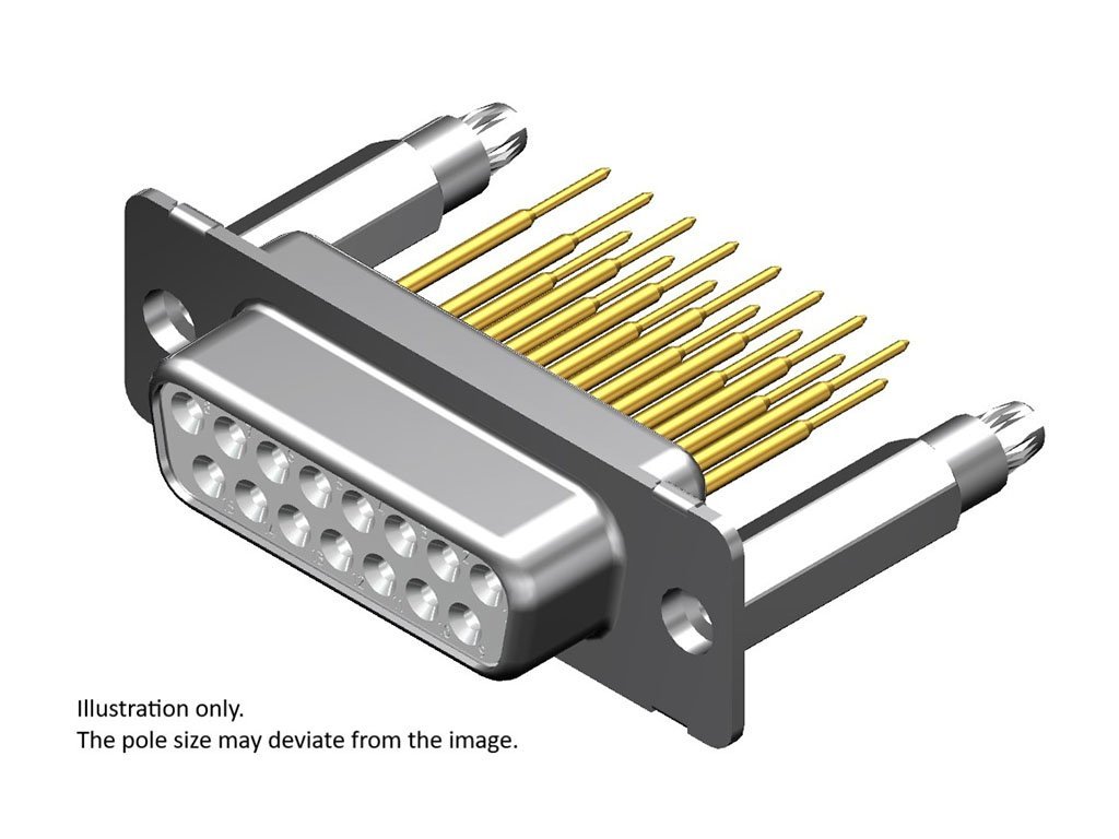 FCT Standard-Density D-Sub Connector, Female, Straight, PCB Through Hole, 20.50mm Tail Length, Gold Plating, 500 Mating Cycles, 17.90mm Snap-in Bolt, 37 Circuits, White Insulator