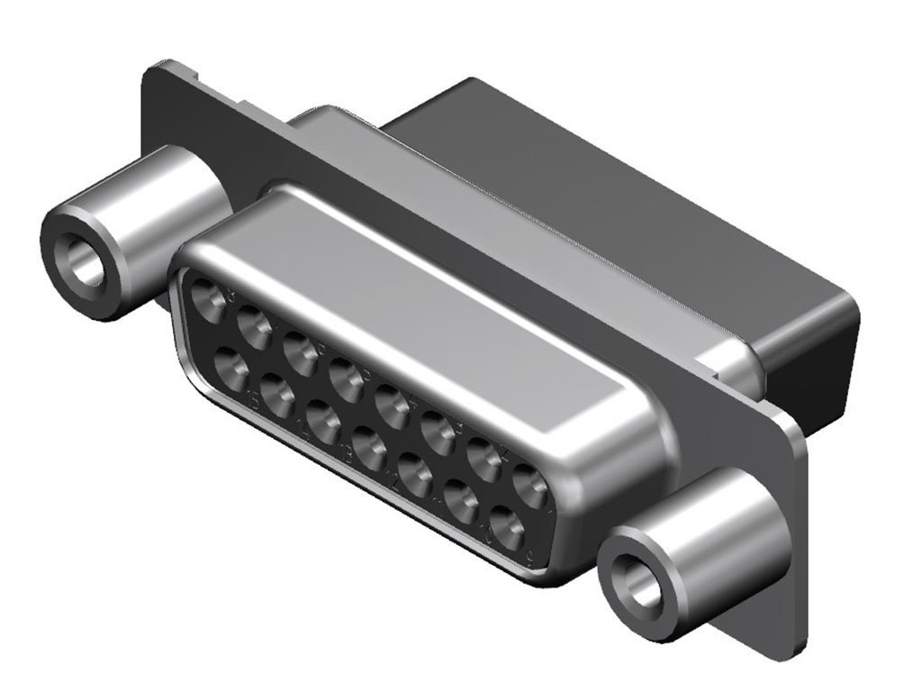 FCT Standard-Density D-Sub Crimp Housing, Female, Shell without Dimples, 6.50mm Threaded Front Spacer, 15 Circuits, Black Front and Rear Insulator
