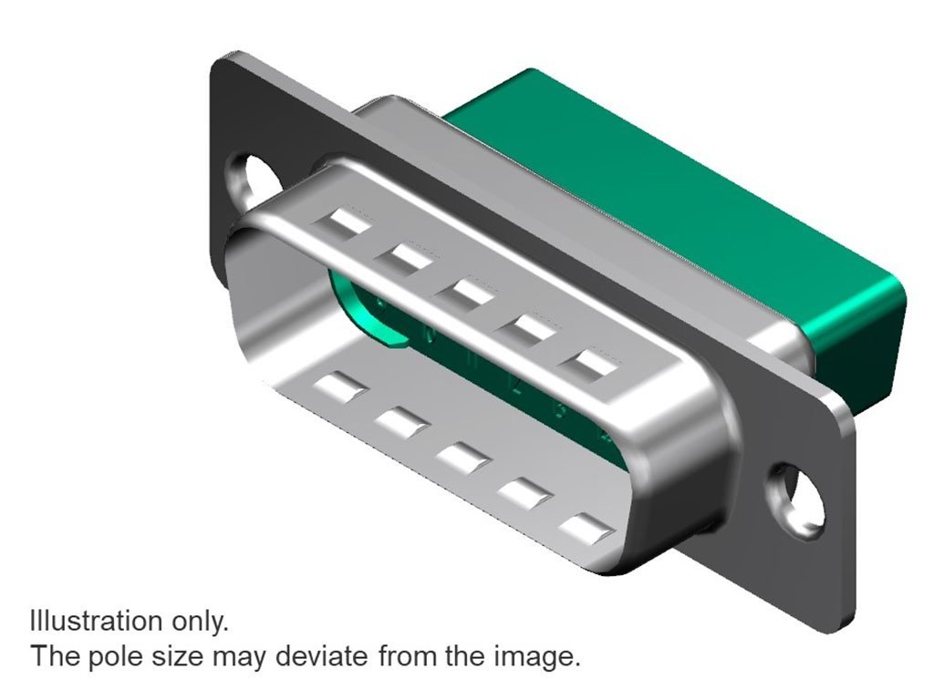 FCT Standard-Density D-Sub Crimp Housing, Male, Tin Plated Shell with Dimples, 9 Circuits, Green Front and Rear Insulator, Crimp Contacts Not Included