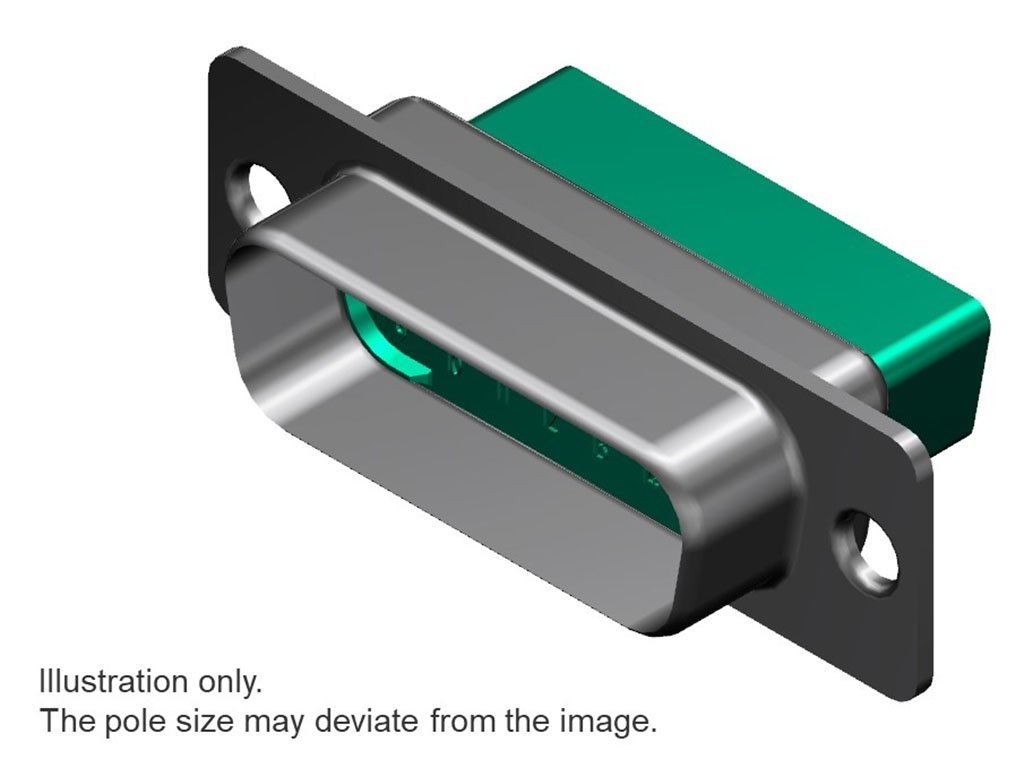 FCT Standard-Density D-Sub Crimp Housing, Male, Nickel Plated Shell without Dimples, 9 Circuits, Green Front and Rear Insulator, Crimp Contacts Not Included