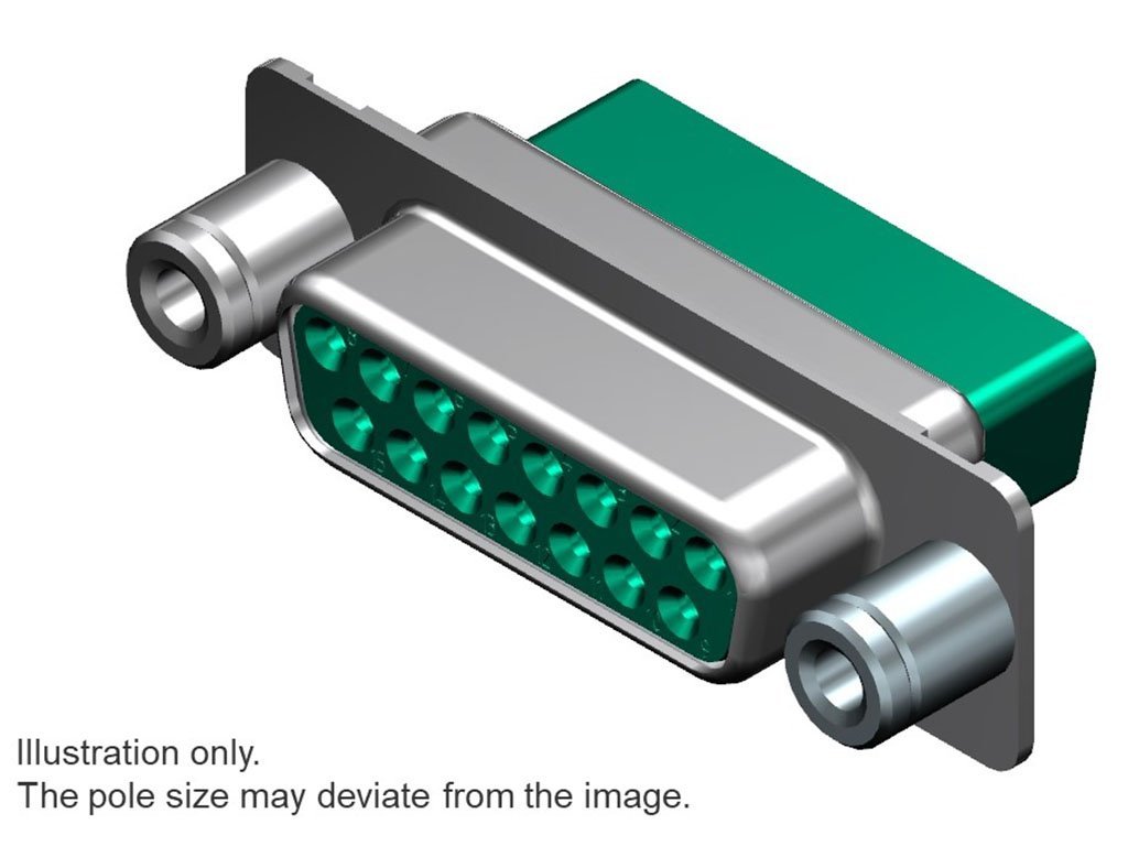 FCT Standard-Density D-Sub Crimp Housing, Female, Tin Plated Shell without Dimples, 6.50mm M3 Threaded Front Spacer, 37 Circuits, Green Front and Rear Insulator, Crimp Contacts Included