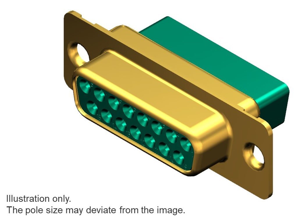 FCT Standard-Density D-Sub Crimp Housing, Female, Gold Plated Shell without Dimples, 37 Circuits, Green Front and Rear Insulator, Crimp Contacts Not Included