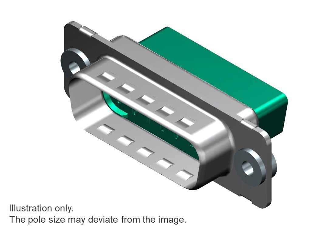 FCT Standard-Density D-Sub Crimp Housing, Male, Shell with Dimples, Float Mount, 9 Circuits, Green Front and Rear Insulator, Crimp Contacts Not Included