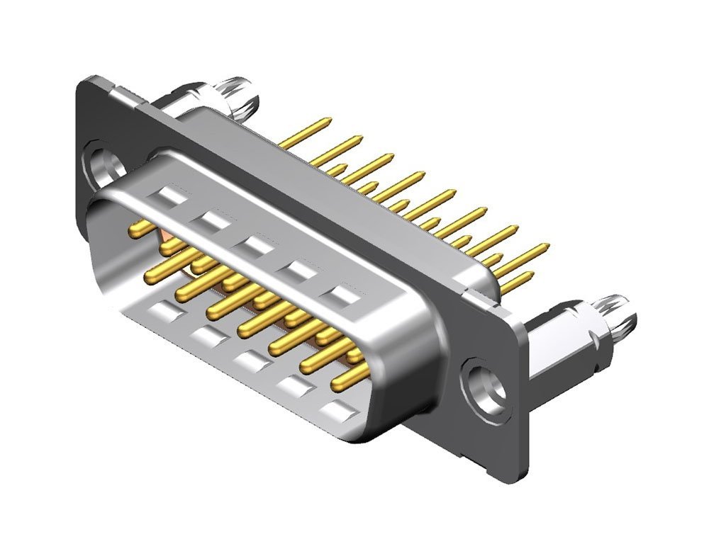 FCT Standard-Density D-Sub Connector, Male, Straight, PCB Through Hole, Brass Shell, 11.70mm Tail Length, Gold Plating, 200 Mating Cycles, 8.10mm M3 Snap-in Bolt, 15 Circuits, Heat Resistant Natural Insulator